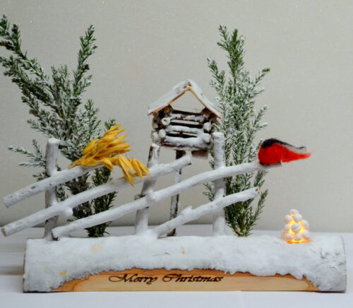 Jouluiset aidat valmistetaan tuulen kaatamia puita käyttäen. Lunta myöten aitojen koristukset tehdään käsityönä.