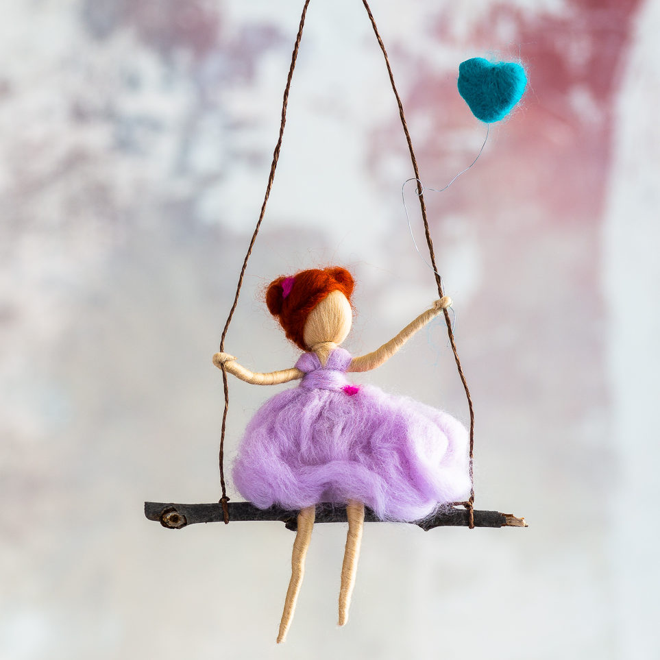 Keinuva keiju -tuoteperheen Onni-sarjan keijuilla on kädessään sydämen muotoinen ilmapallo.