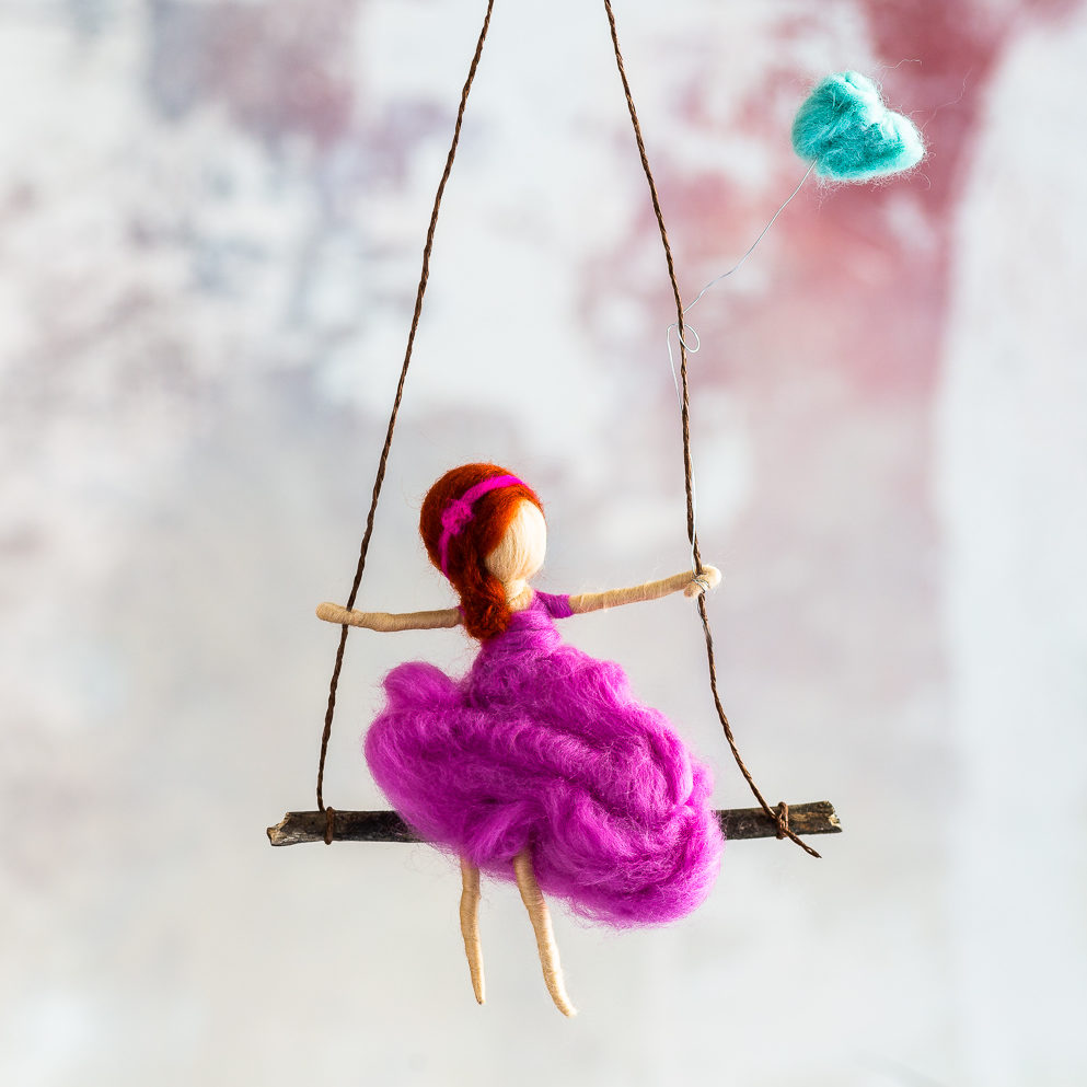 Keinuva keiju -tuoteperheen Onni-sarjan keijuilla on kädessään sydämen muotoinen ilmapallo.