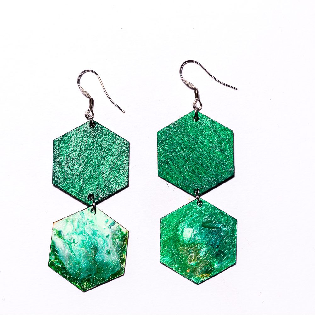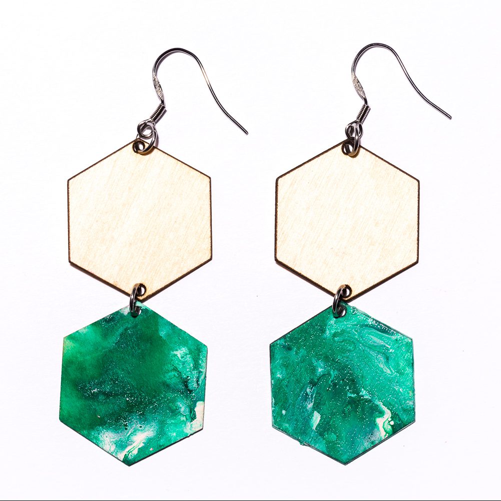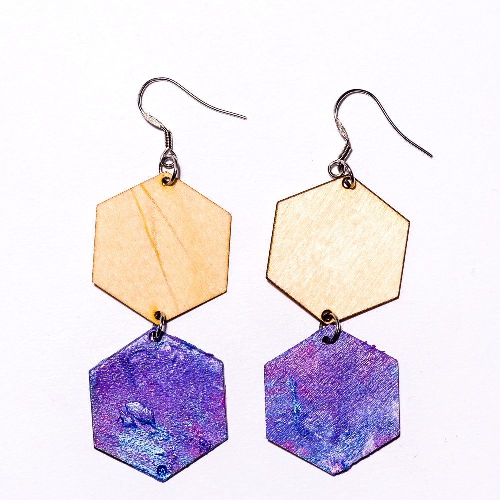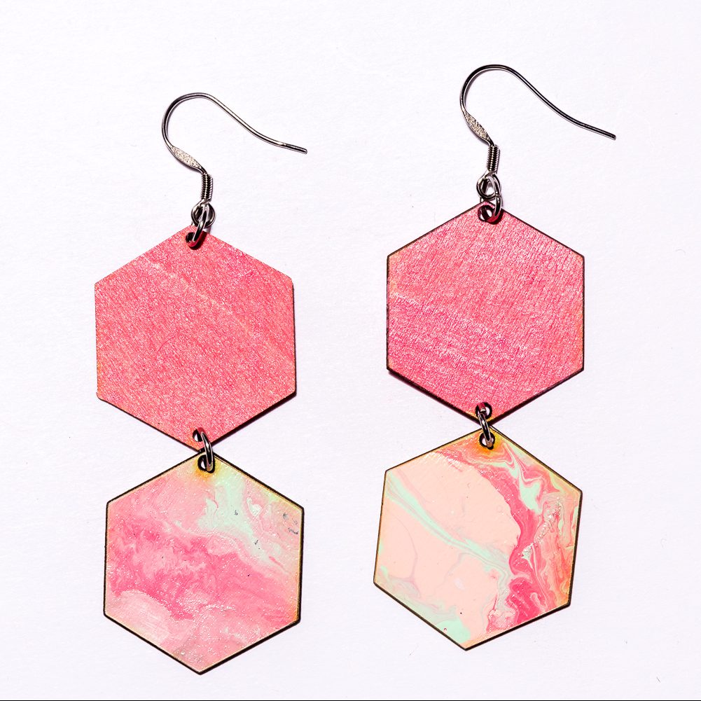 Kaikki korvakorumme maalataan käsityönä, joten yksikään pari ei ole täysin samanlainen. Maalauksessa emme käytä spraymaaleja vaan korvakorut maalataan jokainen yksitellen myrkyttömiä maaleja käyttäen.