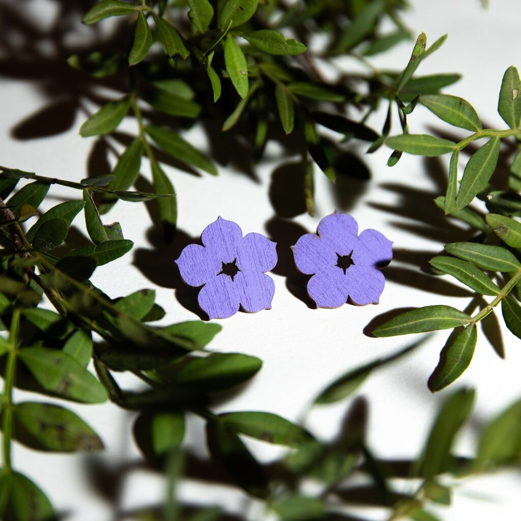 Korvakorut valmistetaan kotimaisesta koivuvanerista ja korut maalataan käsityönä.