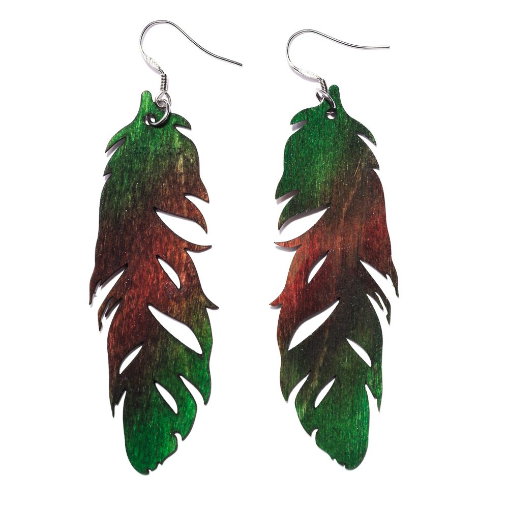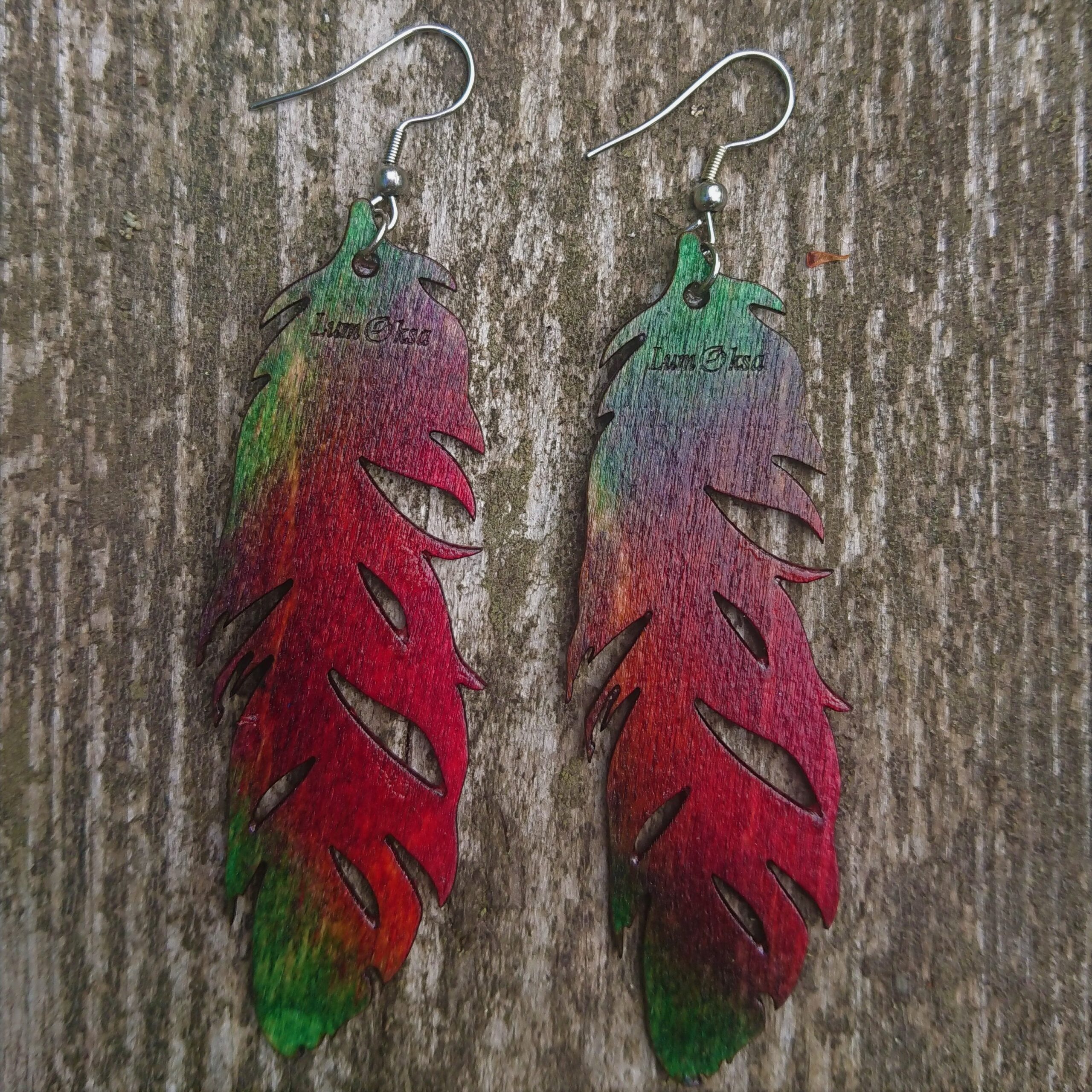 Nämä kotimaisesta, 2mm paksuisesta koivuvanerista valmistetut sulkakorvakorut ovat ihanan kevyet ja sopivat niin arkeen kuin juhlaankin. Vaikka kooltaan korvakoru on suhteellisen iso, se ei korvassa tunnu keveytensä ansiosta lainkaan.