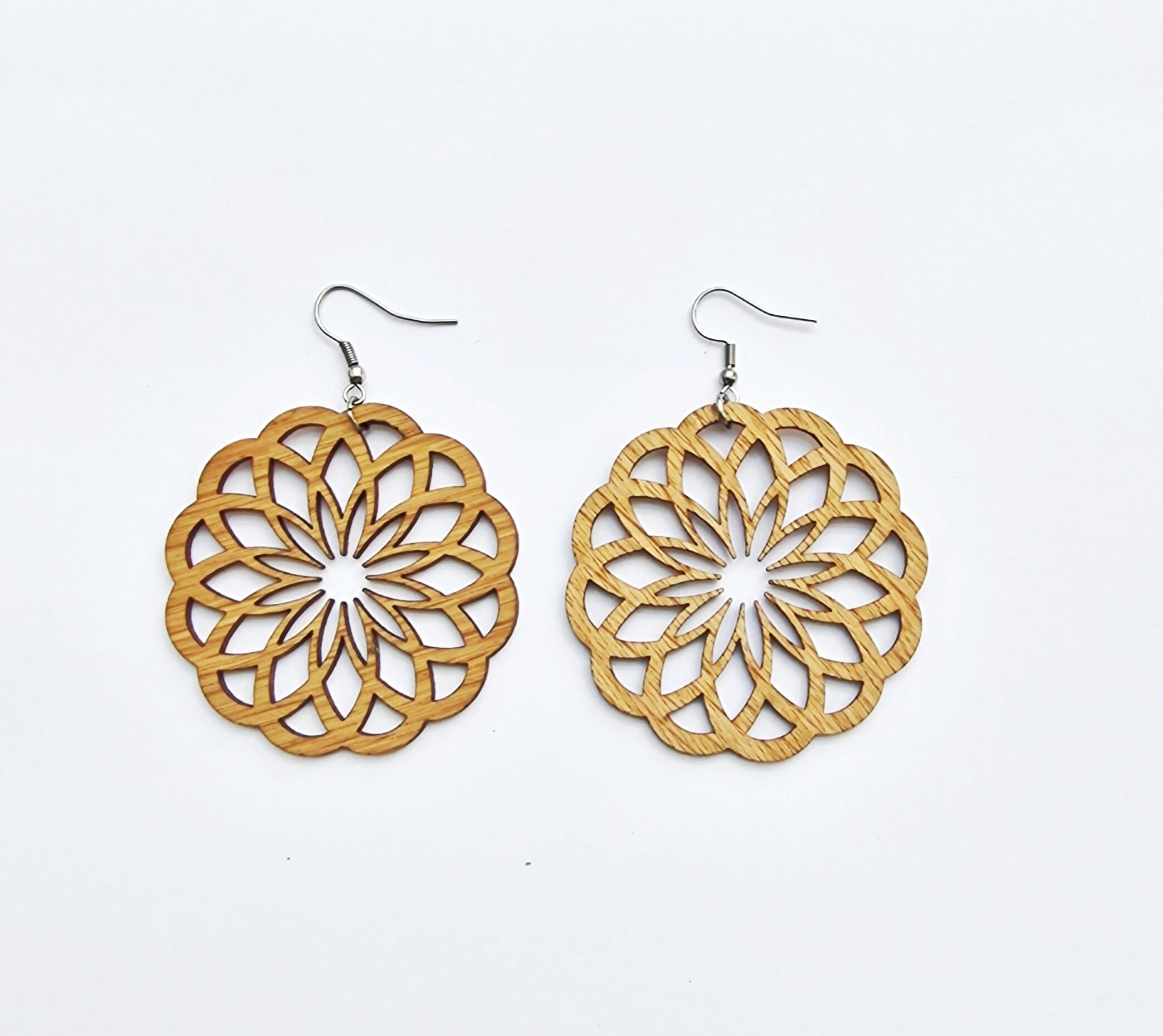 Korvakorujen upea pähkinäinen väri on peräisin kotimaisesta tammiviilusta, josta korut valmistetaan.